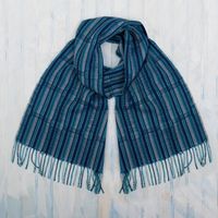 Blue Striped Baby Alpaca Scarf 'Huancayo Legacy' Item ID: 2669891444