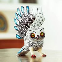 Blue Tipped White and Black Owl Alebrije Figure from Oaxaca 'Frosty Owl' Item ID: 2671807931