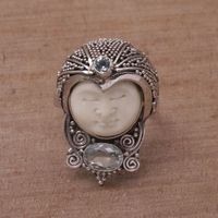 Blue Topaz and Carved Bone Sterling Silver Celuk Ring 'Celuk Prince' Item ID: 2671734428