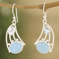 Blue Topaz and Chalcedony Dangle Earrings from India 'Blue Glare' Item ID: 2671787635