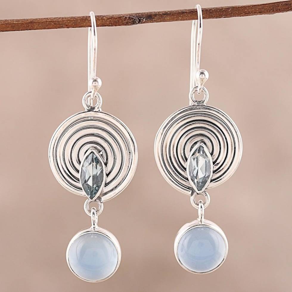 Blue Topaz and Chalcedony Dangle Earrings from India 'Wonderful Spiral' Item ID: 2671792507