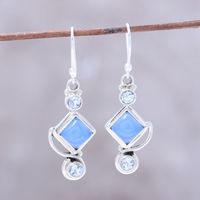 Blue Topaz and Chalcedony Dangle Earrings Handmade in India 'Beauty of the Seas' Item ID: 2671792379