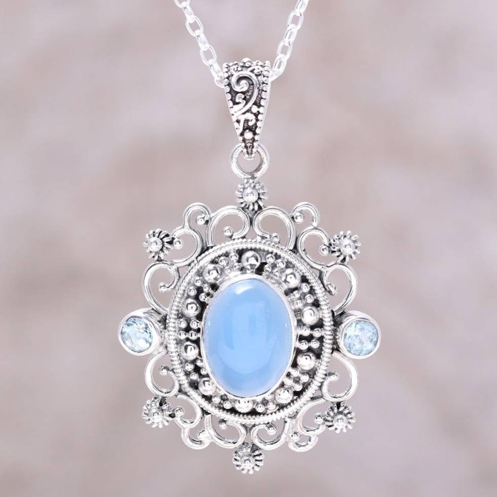 Blue Topaz and Chalcedony Pendant Necklace from India 'Glowing Heaven' Item ID: 2669943897