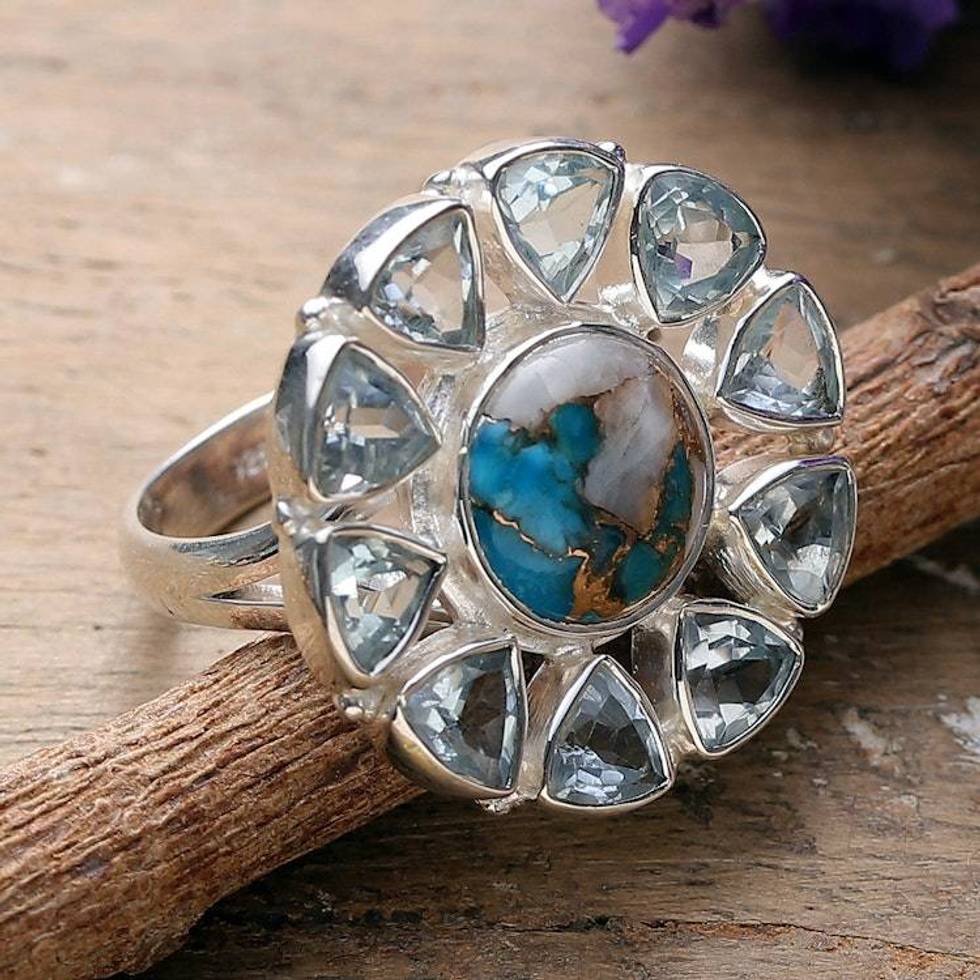 Blue Topaz and Composite Turquoise Cocktail Ring from India 'Ethereal Sun' Item ID: 2676665966
