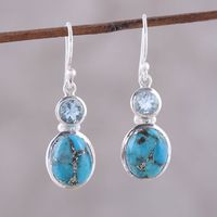Blue Topaz and Composite Turquoise Dangle Earrings 'Tidal Dream' Item ID: 2671792587