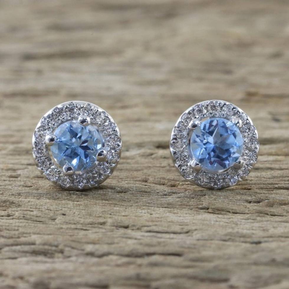 Blue Topaz and Cubic Zirconia Stud Earrings from Thailand 'Glamour and Grace' Item ID: 2671801573