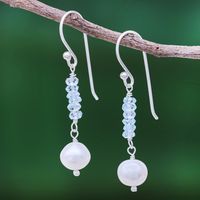 Blue Topaz and Cultured Pearl Dangle Earrings 'Iced' Item ID: 2671800127