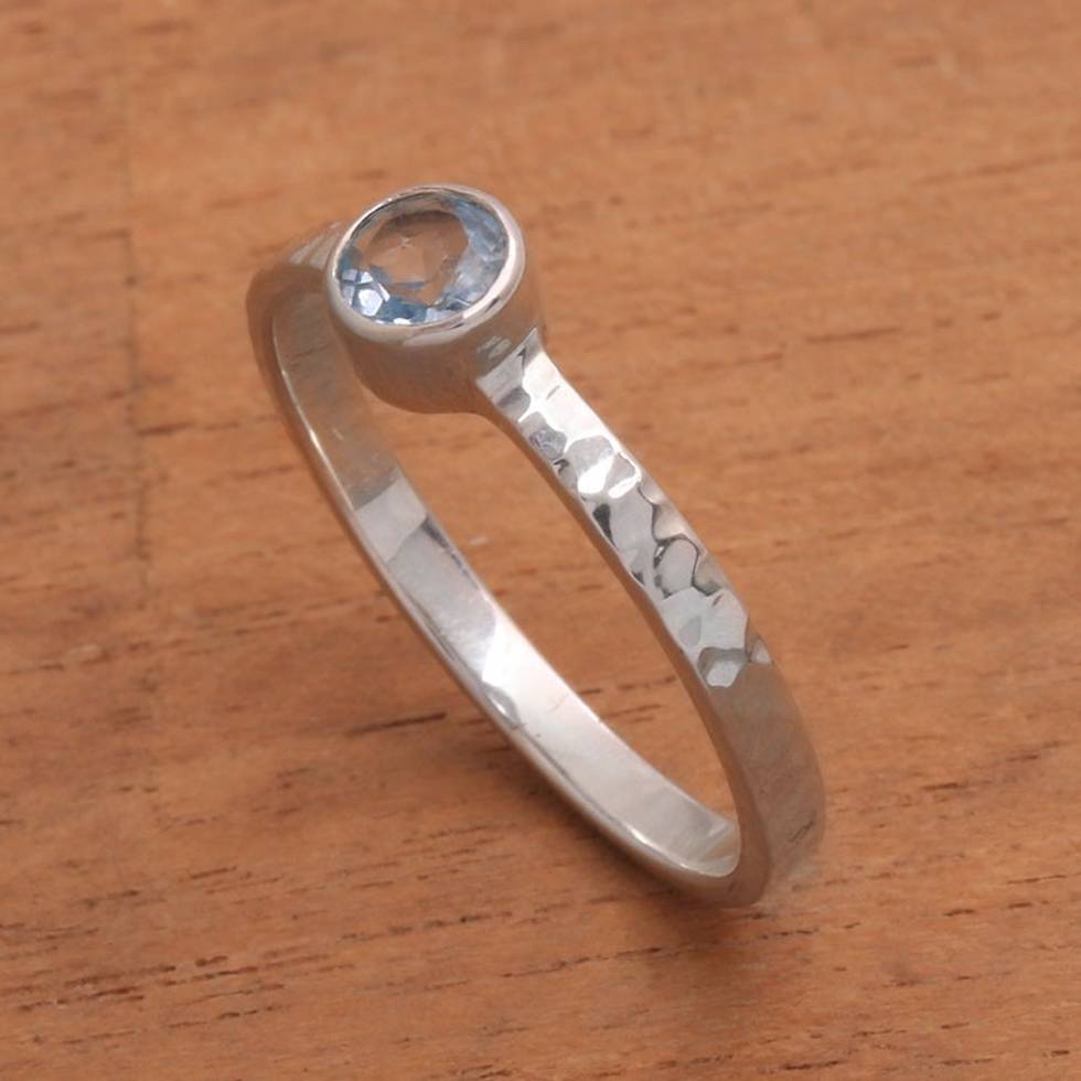Blue Topaz and Hammered Sterling Silver Solitaire Ring 'Pretty Paradox' Item ID: 2671736865