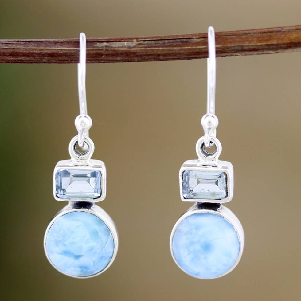 Blue Topaz and Larimar Dangle Earrings Crafted India 'Serene Alliance' Item ID: 2671786680