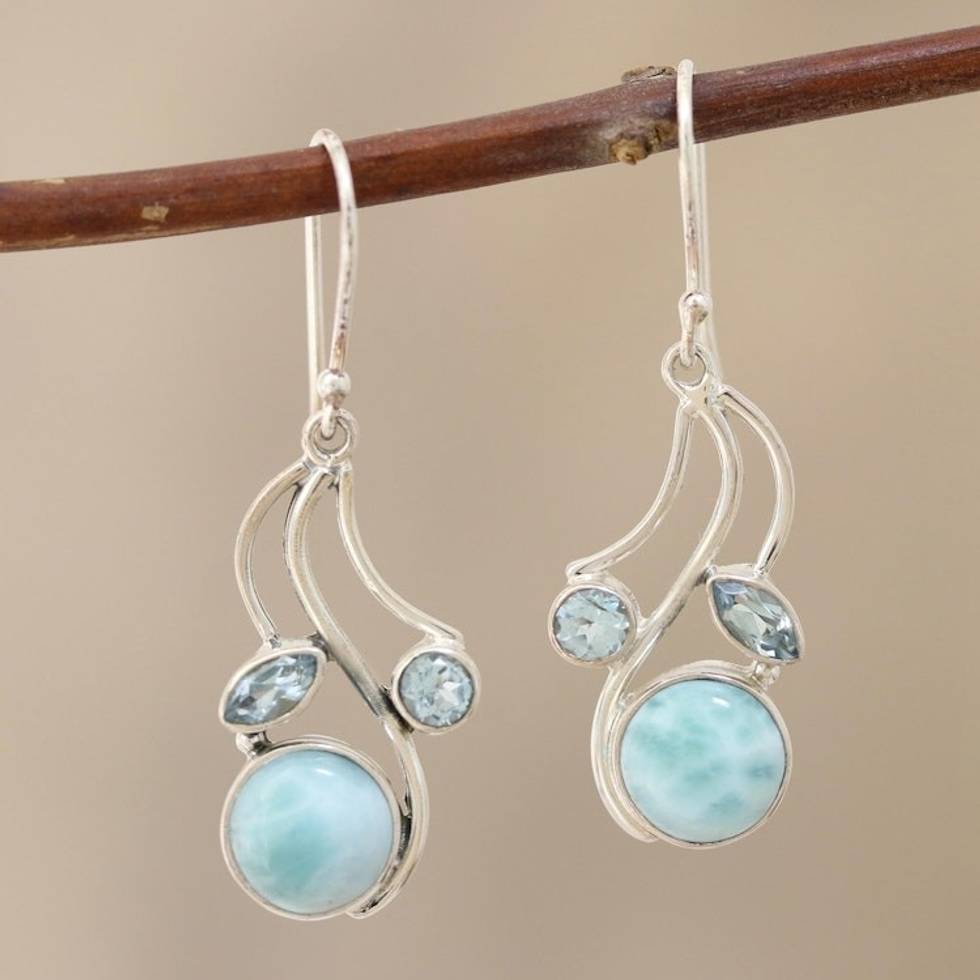 Blue Topaz and Larimar Dangle Earrings 'Triple Fascination' Item ID: 2671625868