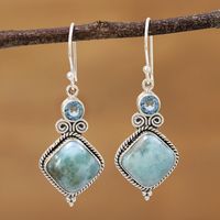 Blue Topaz and Larimar Sterling Silver Dangle Earrings 'Pastel Seas' Item ID: 2669925429