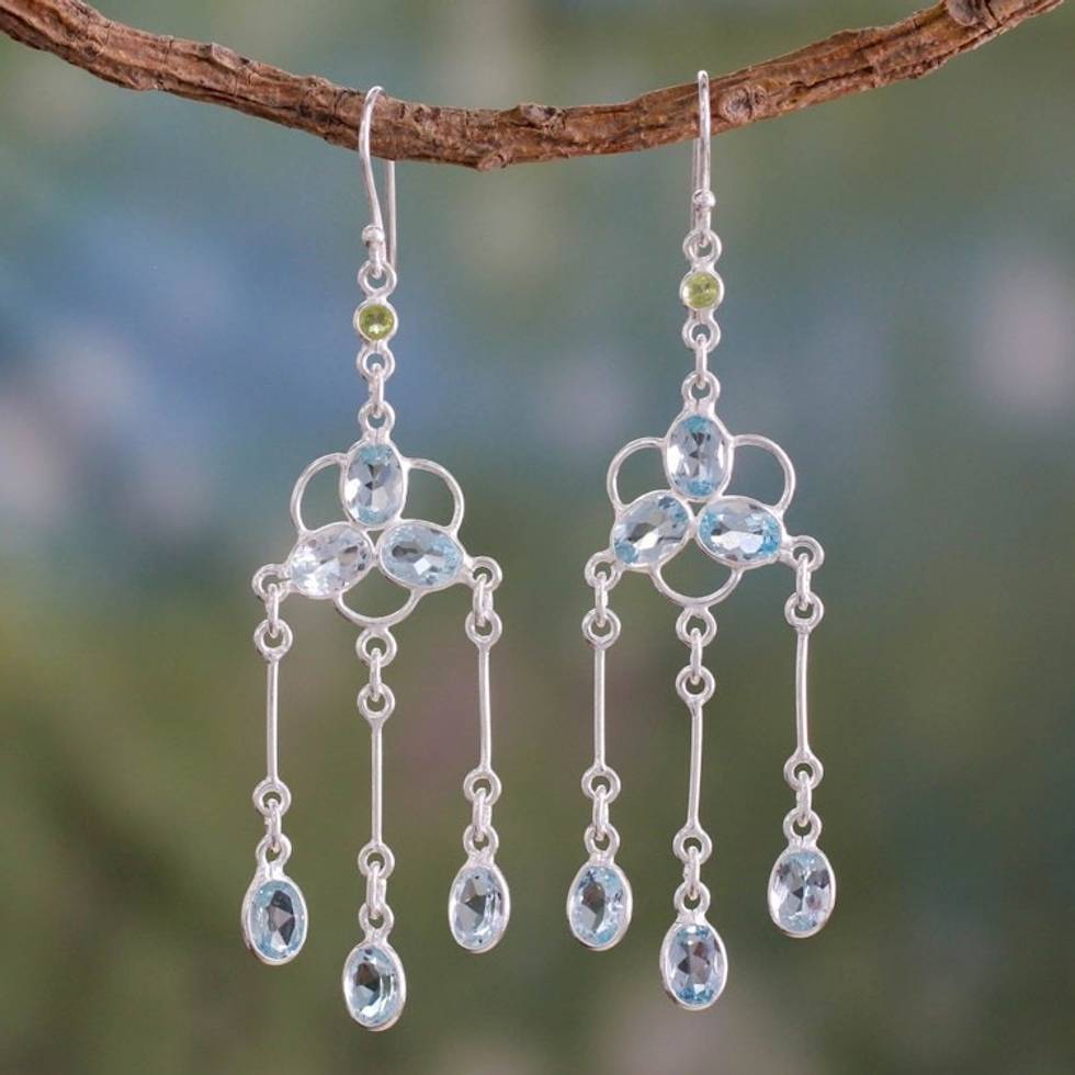 Blue Topaz and Peridot Silver Chandelier Earrings 'Midsummer Light' Item ID: 2671793030