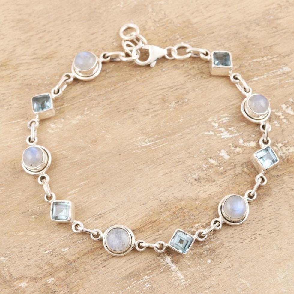 Blue Topaz and Rainbow Moonstone Bracelet 'Glowing Geometry' Item ID: 2671625329