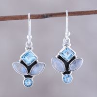 Blue Topaz and Rainbow Moonstone Dangle Earrings from India 'Glitzy Blue' Item ID: 2671618960