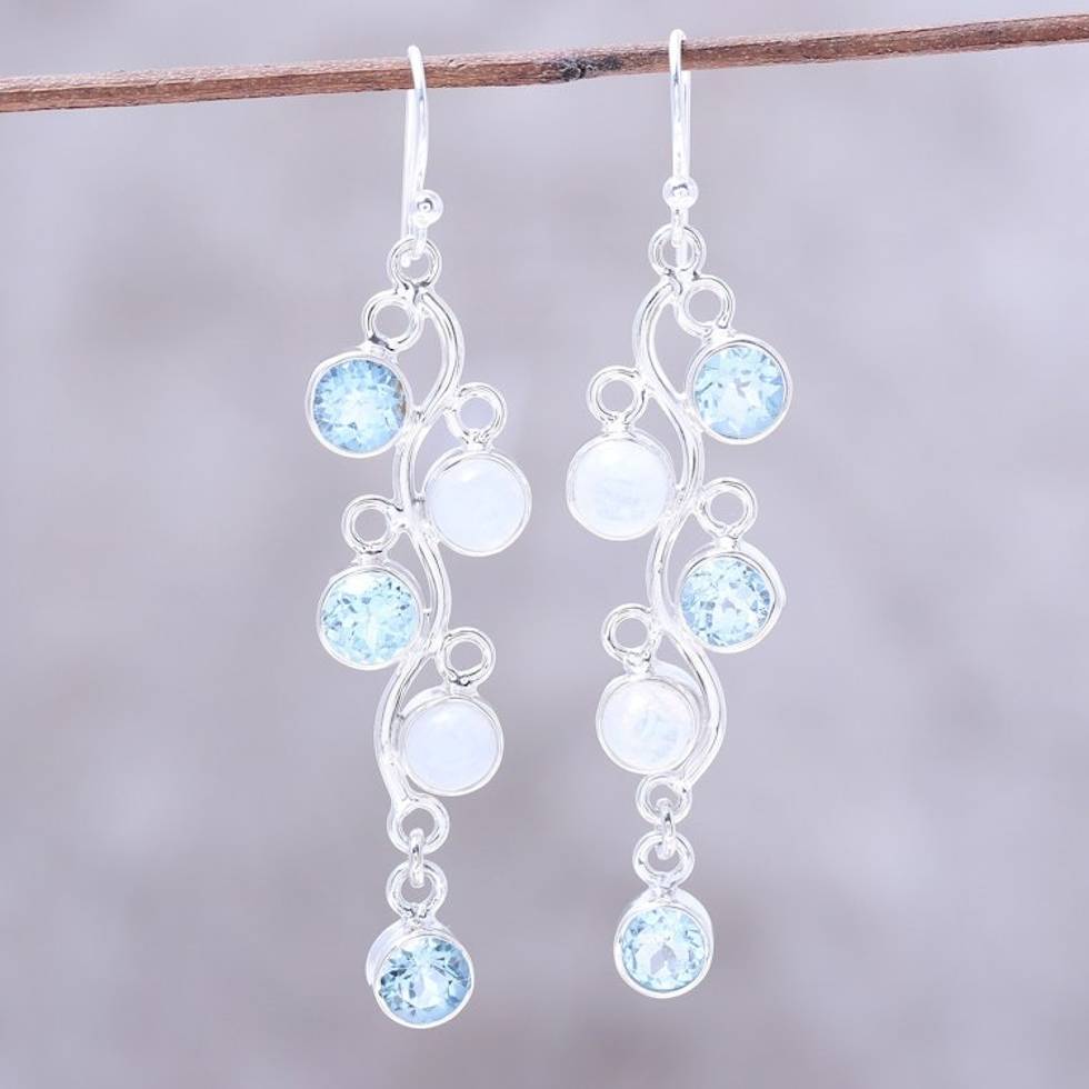 Blue Topaz and Rainbow Moonstone Earrings from India 'Morning Climber' Item ID: 2669925046