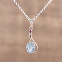 Blue Topaz and Ruby Pendant Necklace from India 'Enthralling Sky' Item ID: 2671790637