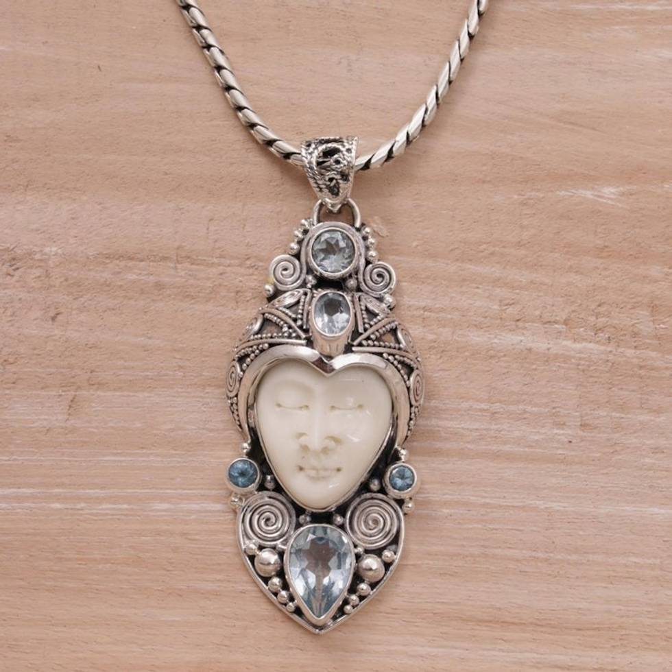 Blue Topaz and Sterling Silver Carved Necklace from Bali 'Royal Knight' Item ID: 2671734208
