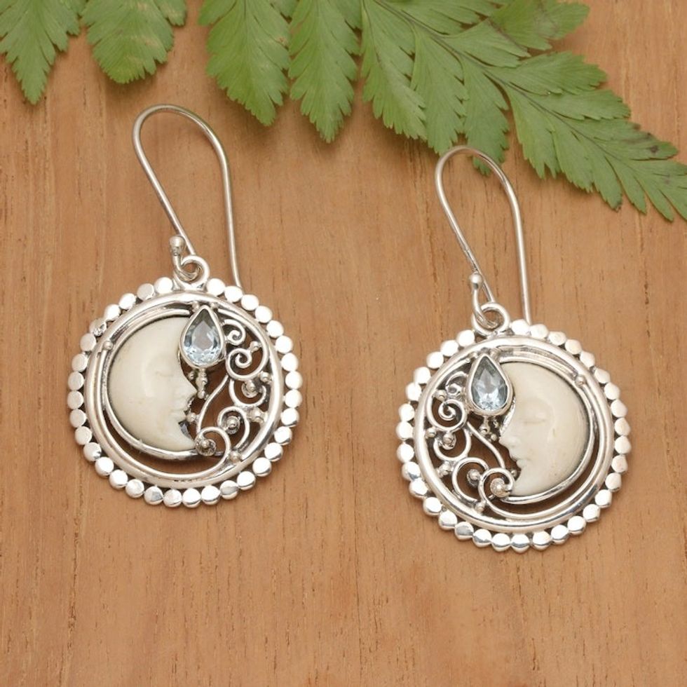 Blue Topaz and Sterling Silver Crescent Moon Dangle Earrings 'Sleeping Moon' Item ID: 2671558086