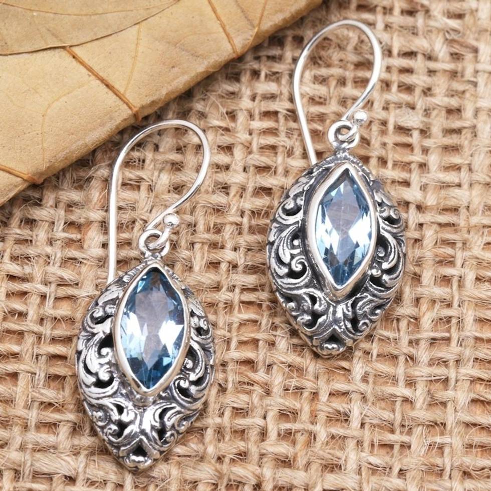 Blue Topaz and Sterling Silver Dangle Earrings 'Air Battle' Item ID: 2671747486