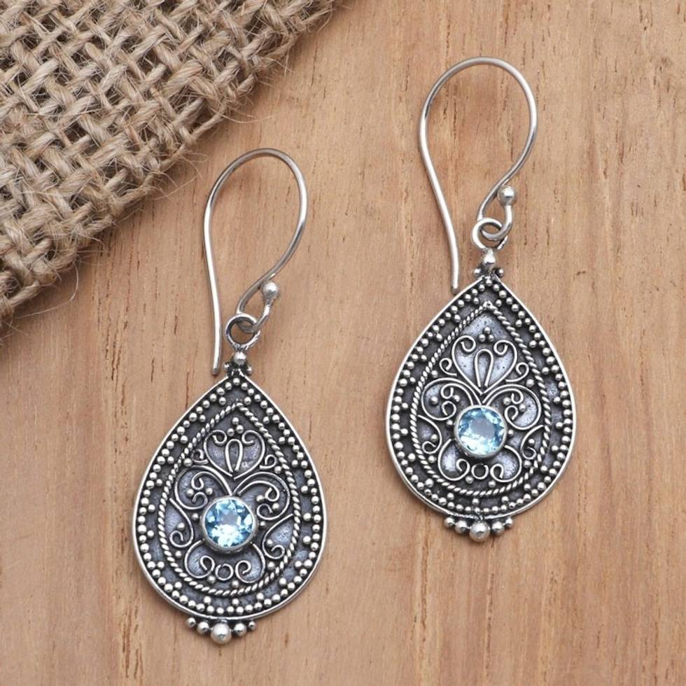 Blue Topaz and Sterling Silver Dangle Earrings 'Blue Birthday' Item ID: 2671745256