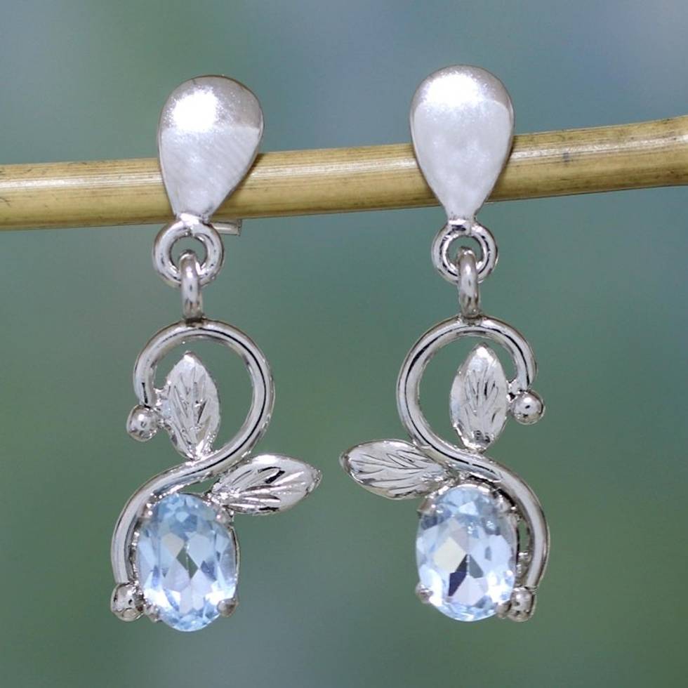 Blue Topaz and Sterling Silver Dangle Earrings 'Blue Magic' Item ID: 2671794332