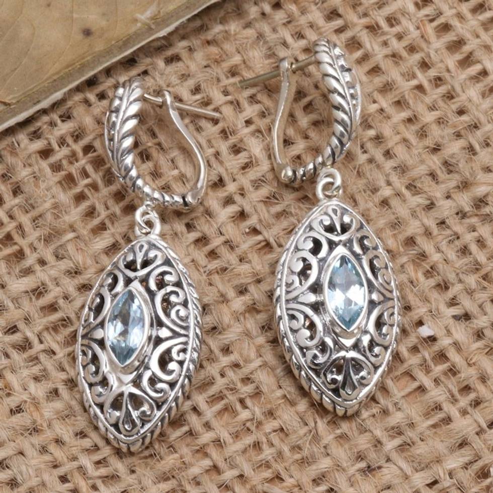 Blue Topaz and Sterling Silver Dangle Earrings 'Blue Peak' Item ID: 2671745194
