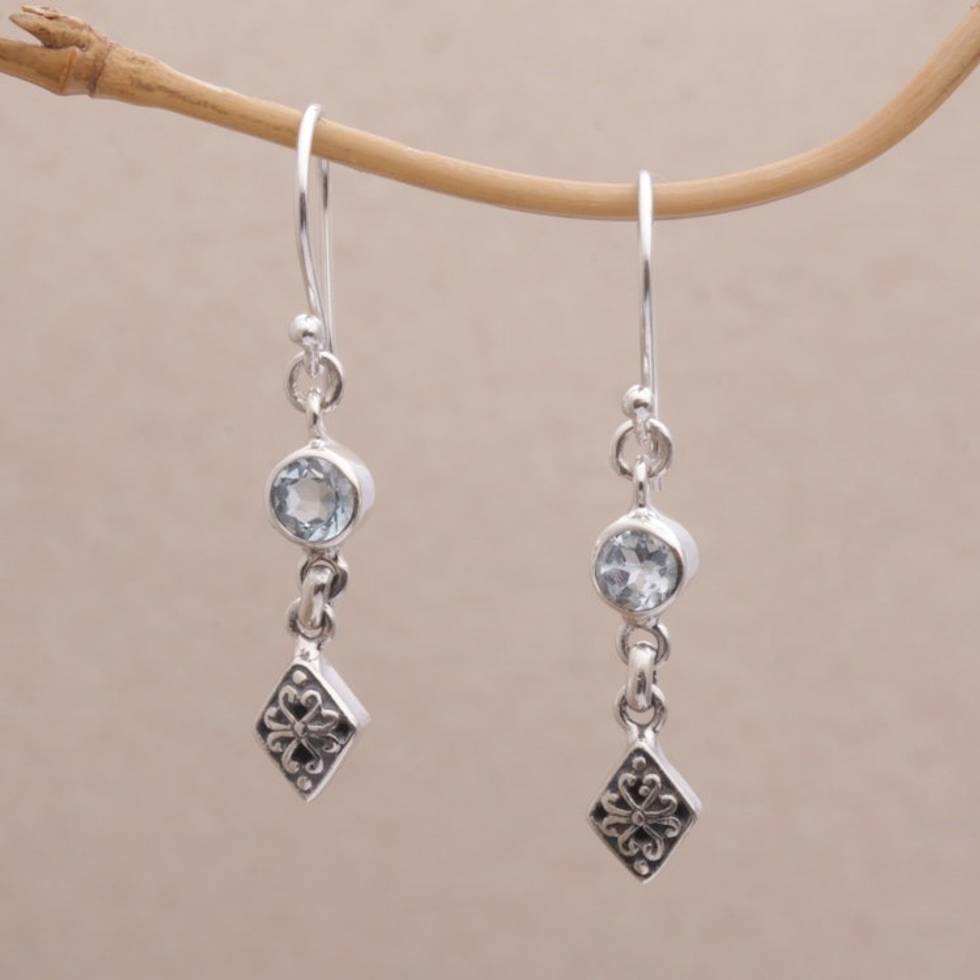 Blue Topaz and Sterling Silver Dangle Earrings from Bali 'Sky Serenade' Item ID: 2671820873