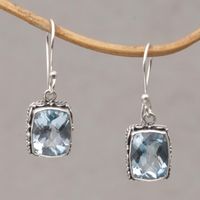Blue Topaz and Sterling Silver Dangle Earrings from Bali 'Temple Gleam' Item ID: 2669921508