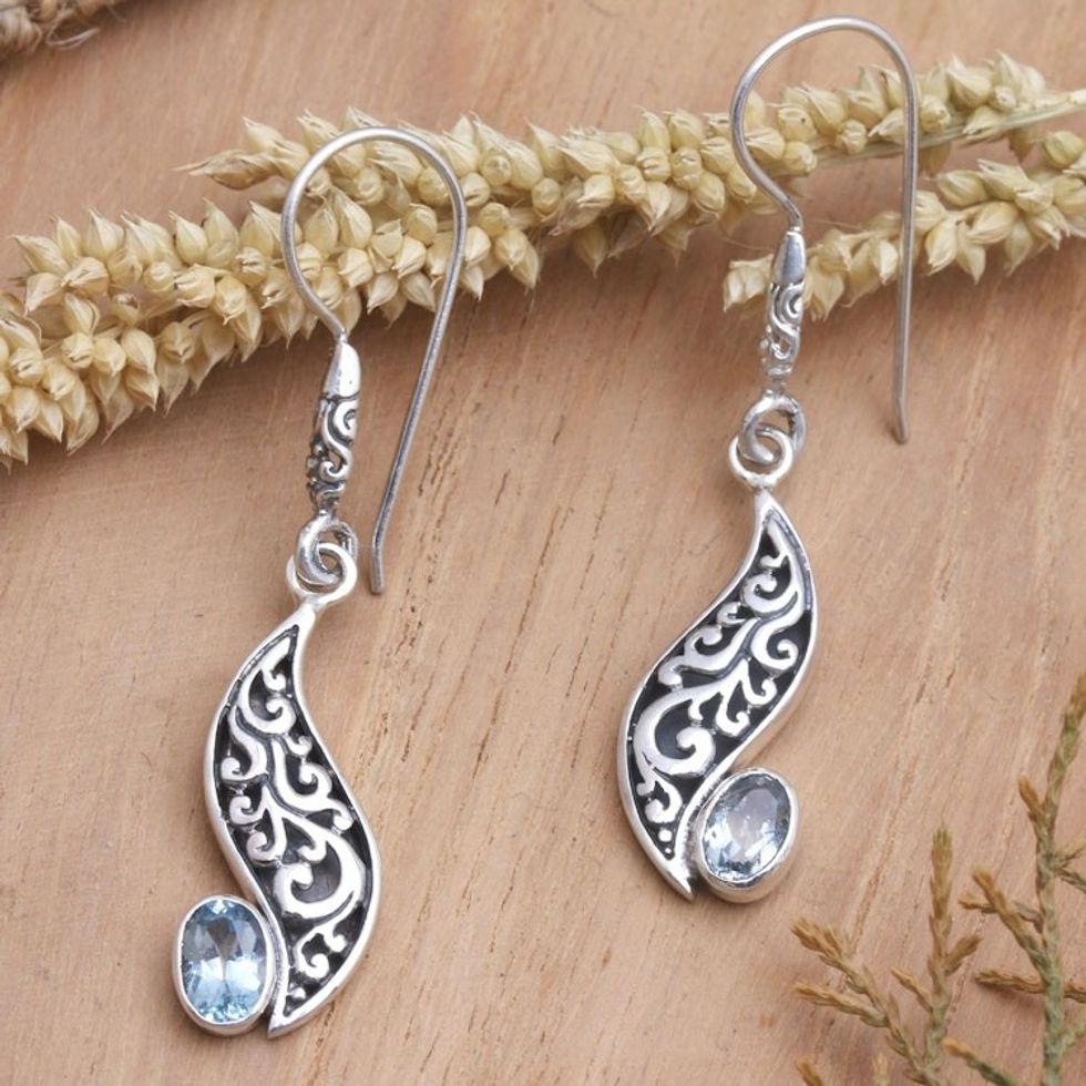 Blue Topaz and Sterling Silver Dangle Earrings from Bali 'Wave of Life' Item ID: 2671746827
