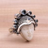 Blue Topaz and Sterling Silver Face Cocktail Ring from Bali 'Sunshine Knight' Item ID: 2671734616