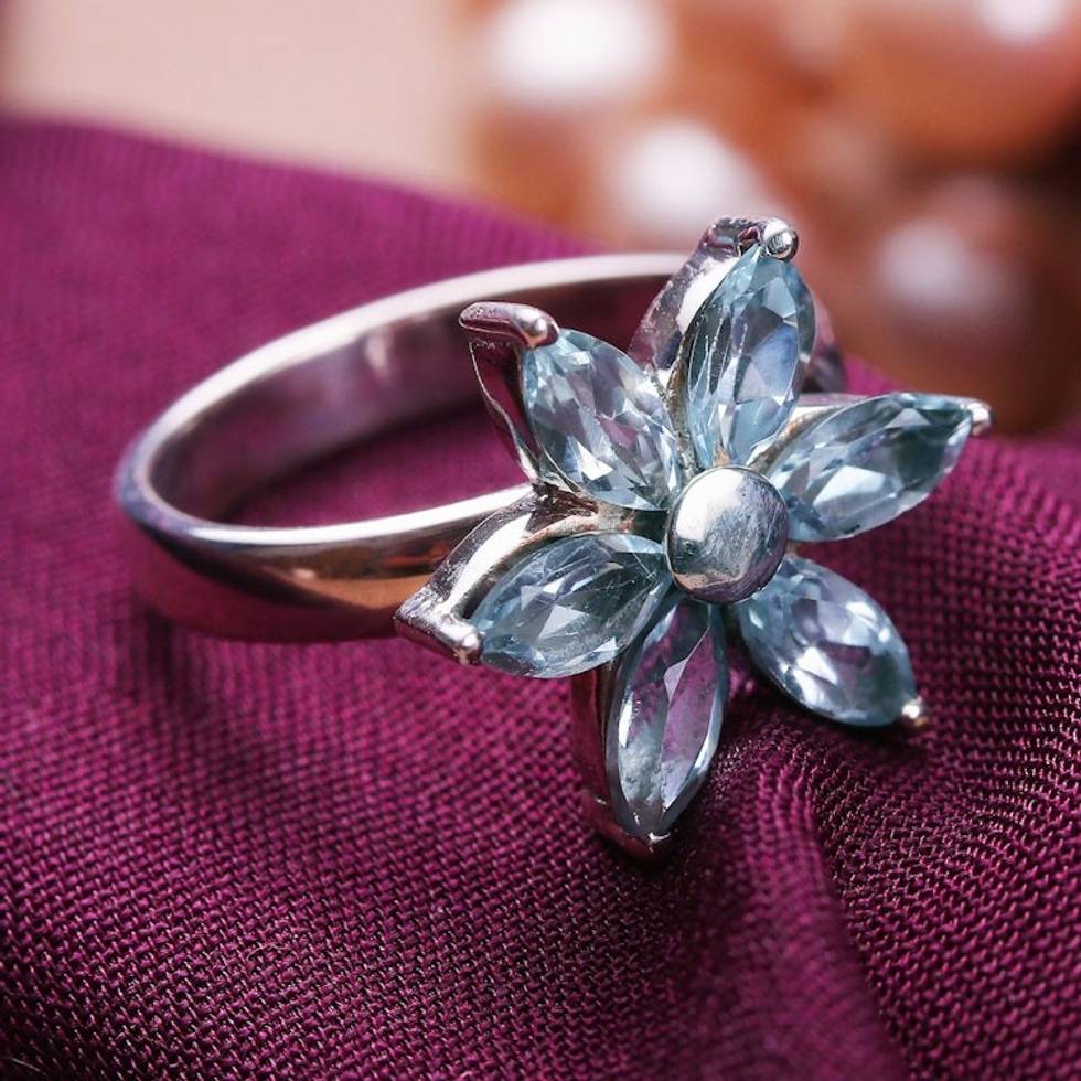 Blue Topaz and Sterling Silver Floral Ring from India 'Sparkling Daisy' Item ID: 2671791123