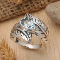 Blue Topaz and Sterling Silver Leaf Cocktail Ring from Bali 'Leafy Caress' Item ID: 2671734658