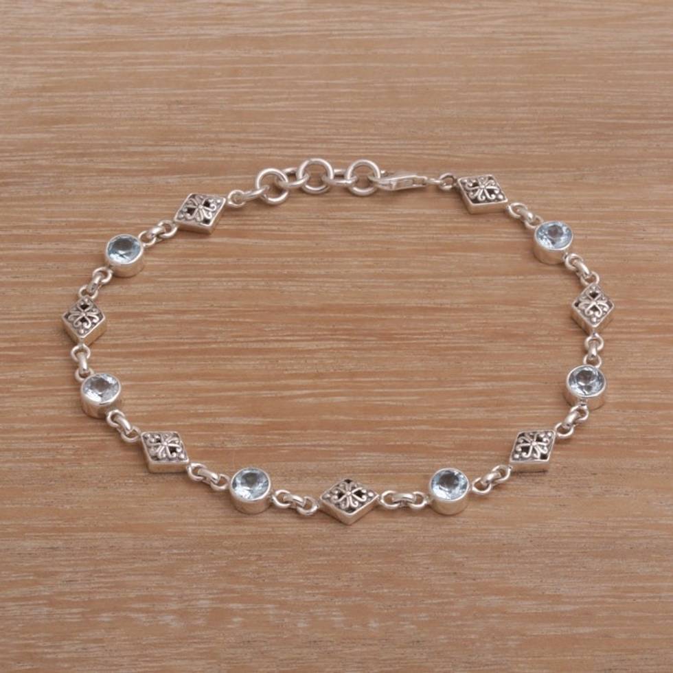 Blue Topaz and Sterling Silver Link Bracelet from Bali 'Sky Serenade' Item ID: 2670221948