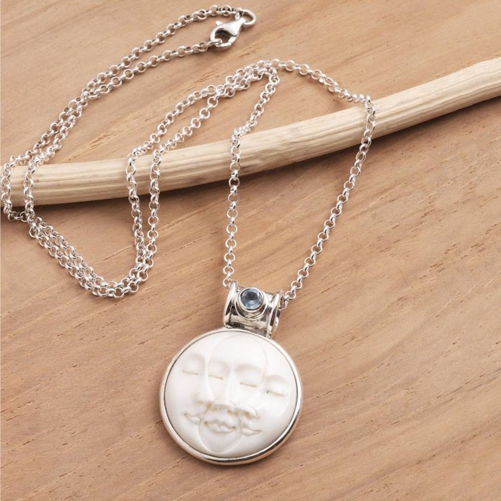 Blue Topaz and Sterling Silver Moon Pendant Necklace 'Moon Phase Faces' Item ID: 2671737660