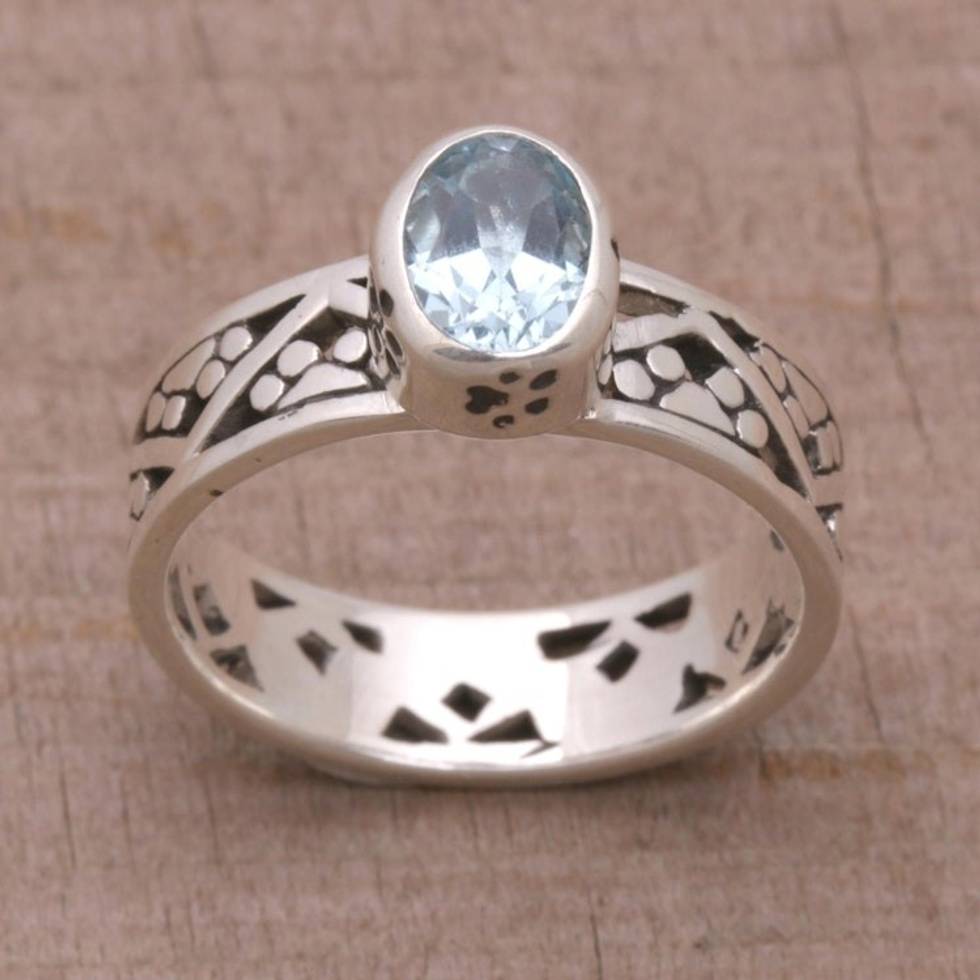 Blue Topaz and Sterling Silver Single Stone Ring from Bali 'Paws for a Cause' Item ID: 2671655735