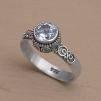 Blue Topaz and Sterling Silver Solitaire Ring from Bali 'Spiral Crown' Item ID: 2669922380