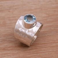 Blue Topaz Cocktail Ring Crafted in Indonesia 'Gleaming Fate' Item ID: 2670122337