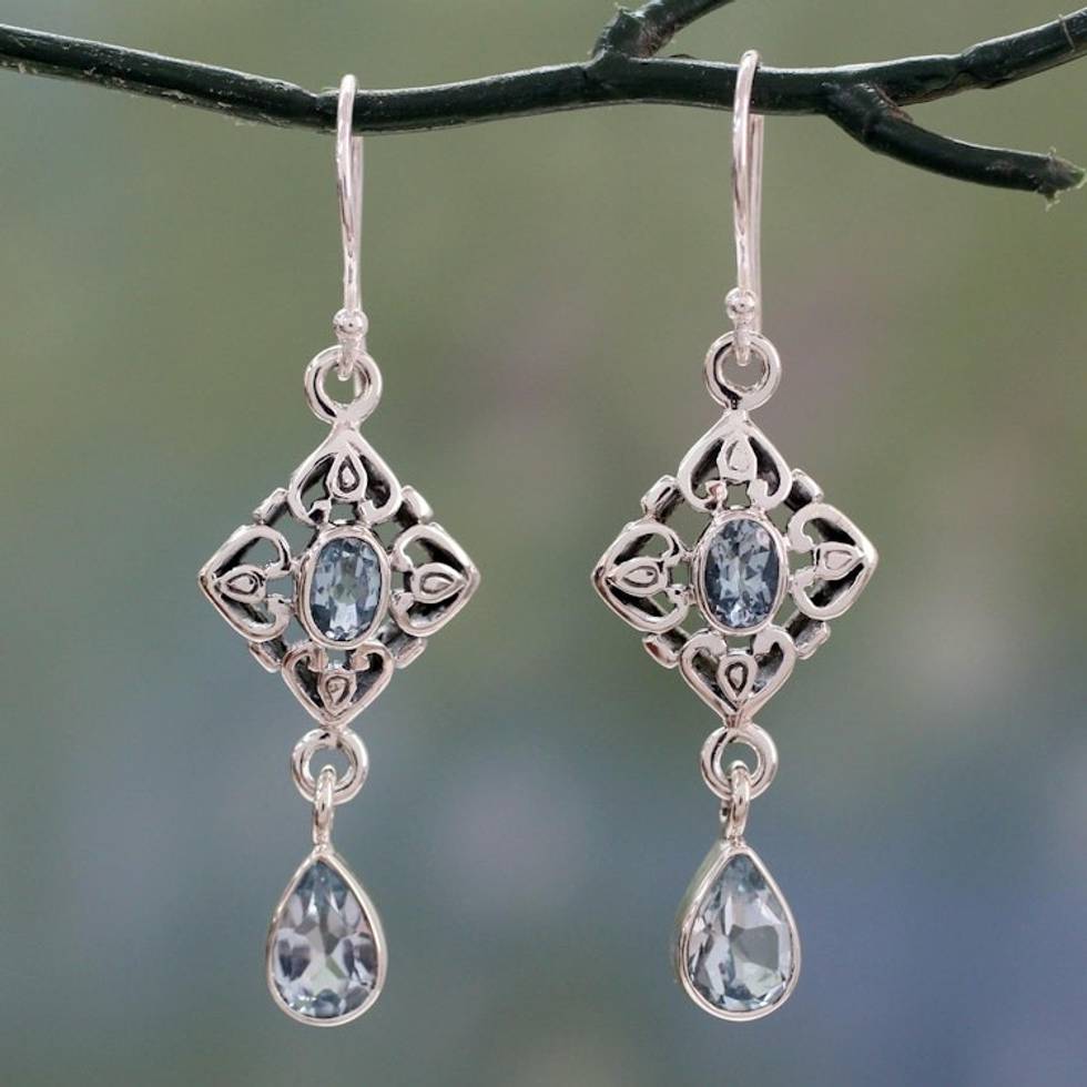 Blue Topaz Dangle Earrings with 5 Carats of Gemstones 'Regal in Blue' Item ID: 2671619579