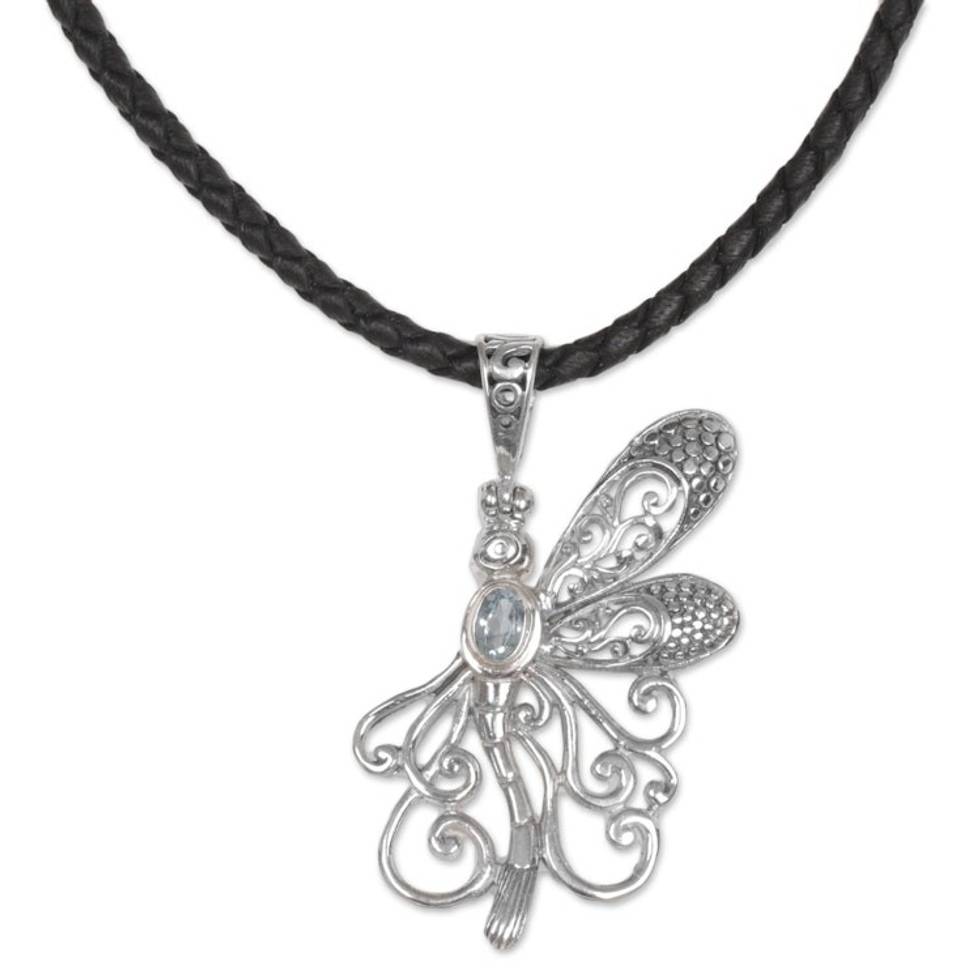 Blue Topaz Dragonfly Necklace Handcrafted in Bali 'Bali Dragonfly' Item ID: 2671735142