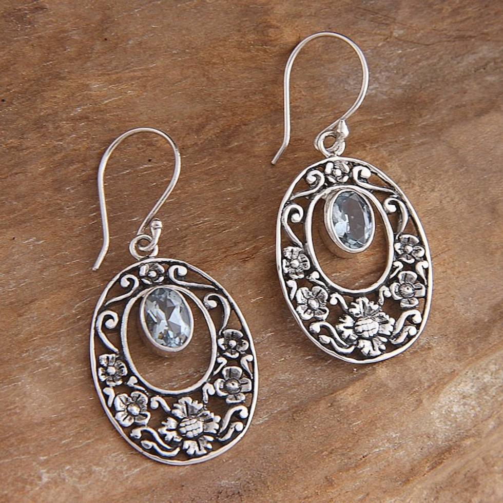 Blue topaz floral earrings 'Bali Bouquet' Item ID: 2669887268