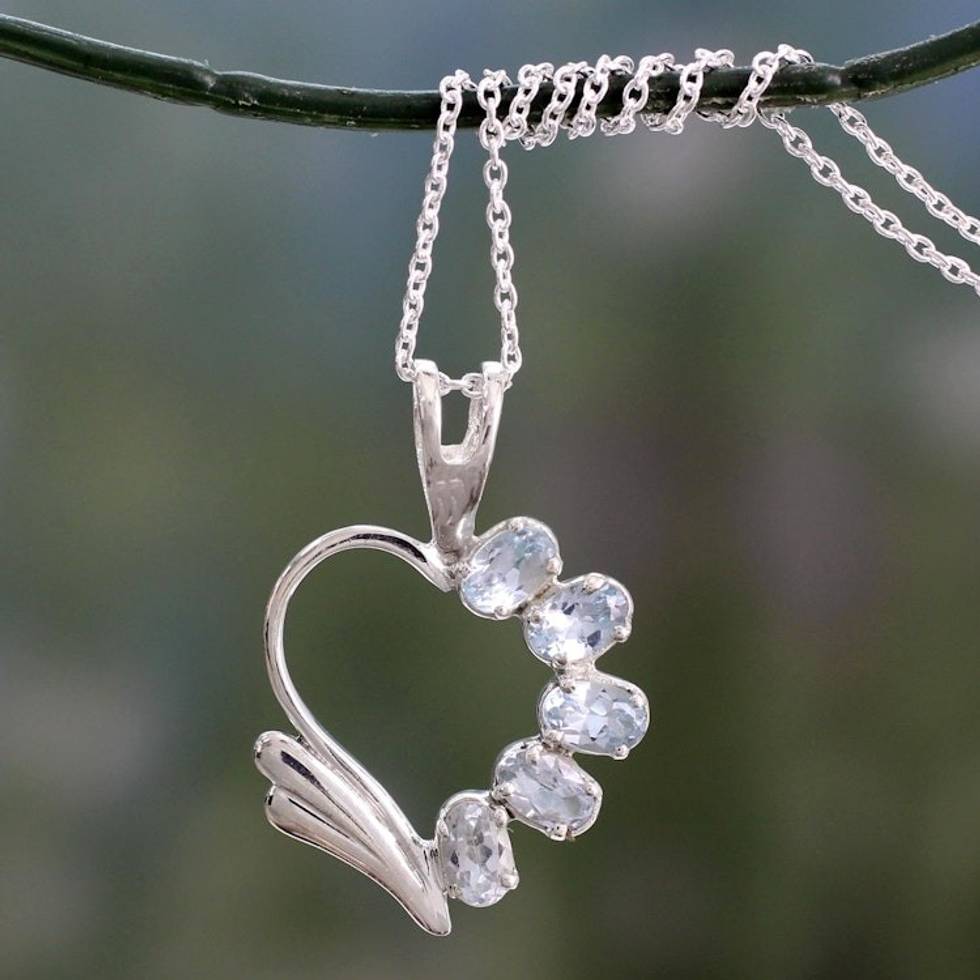 Blue Topaz Heart Necklace 'Winged Heart' Item ID: 2671794701