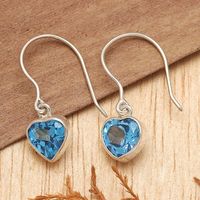 Blue Topaz Heart-Shaped Dangle Earrings from Bali 'Color of Love' Item ID: 2671733513