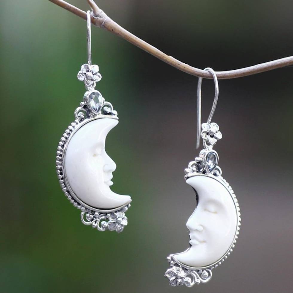 Blue Topaz Moon Earrings 'Sleepy Crescent Moon' Item ID: 2669919840