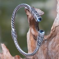 Blue Topaz on Sterling Silver Hinged Cuff Bracelet from Bali 'Beacon of Light' Item ID: 2669923059