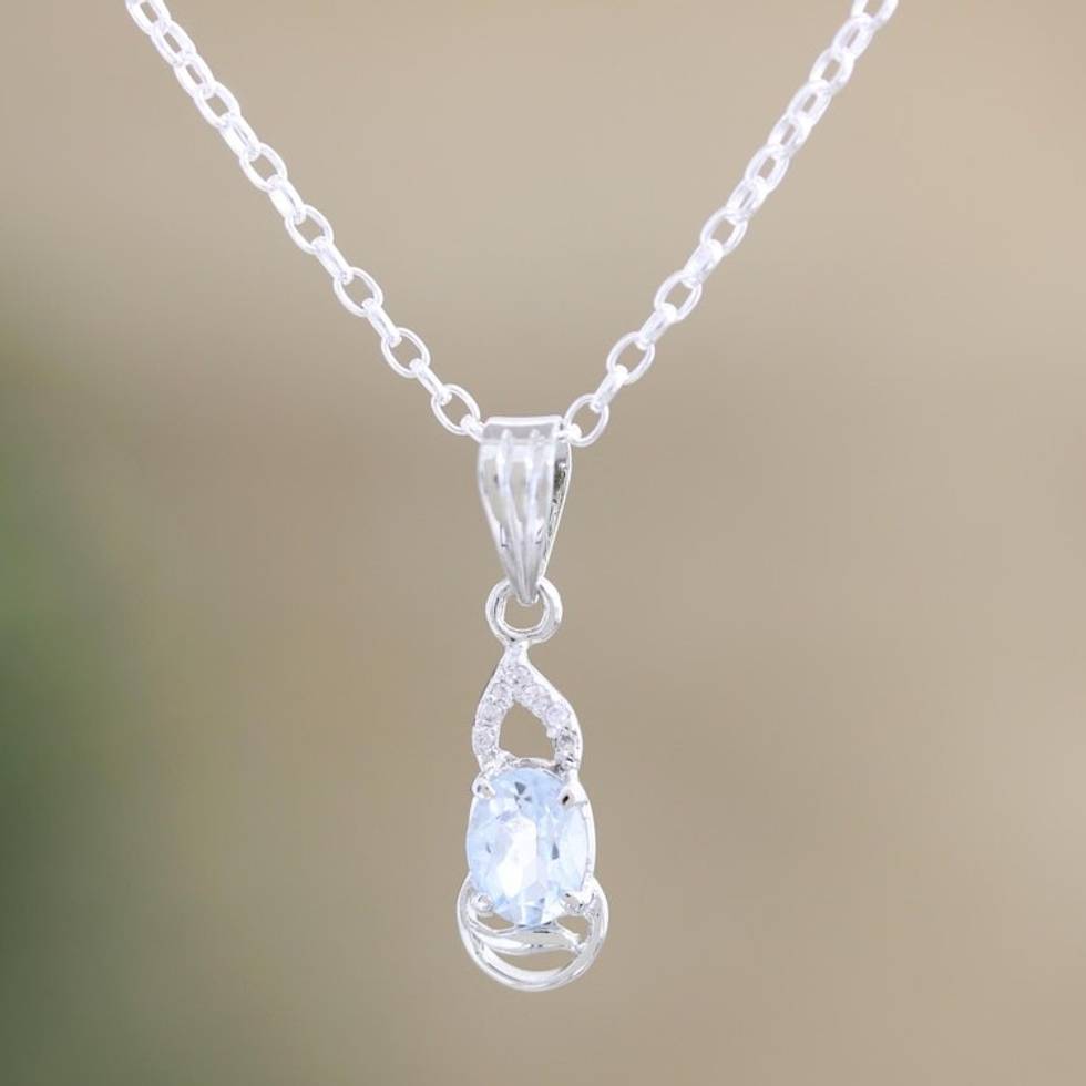 Blue Topaz Pendant Necklace from India 'Into the Mystic' Item ID: 2671787300