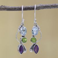 Blue Topaz Peridot Amethyst Sterling Silver Dangle Earrings 'Shimmering Alliance' Item ID: 2669943561