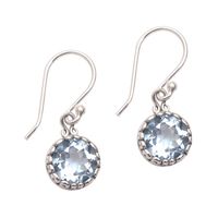 Blue Topaz Round Faceted Dangle Earrings from Bali 'Temptation Blue' Item ID: 2671736507