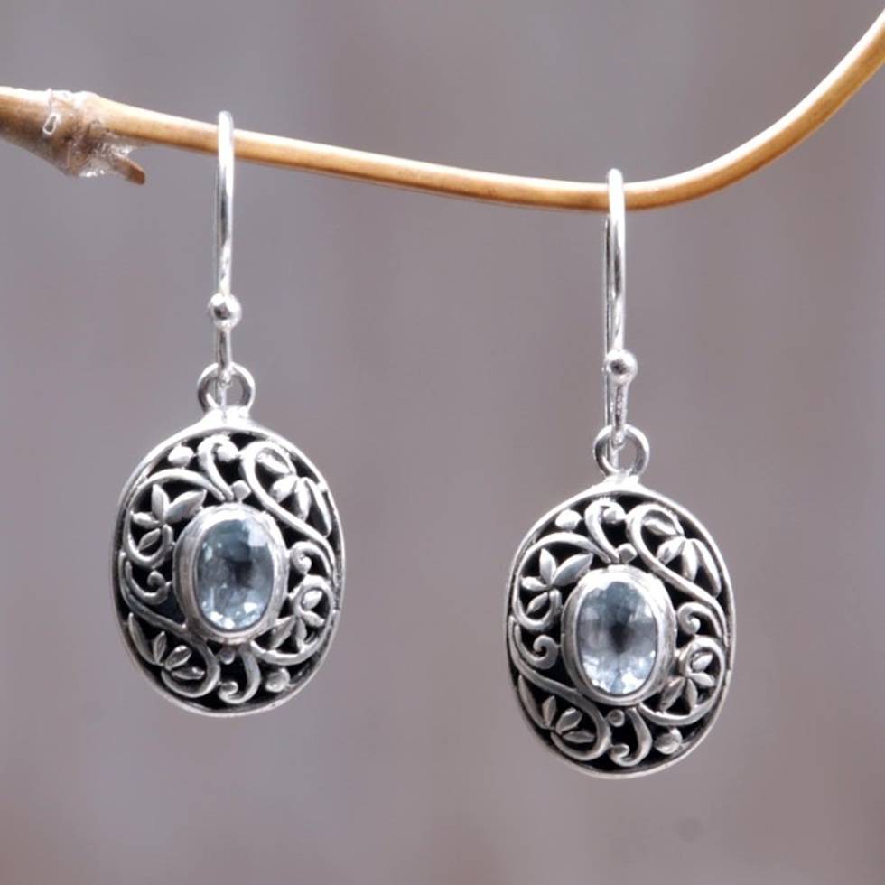 Blue Topaz Sterling Silver Dangle Earrings 'Blue Beauty' Item ID: 2671699377