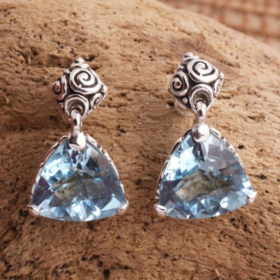 Blue Topaz Sterling Silver Dangle Earrings 'Mystic Trinity' Item ID: 2671472949