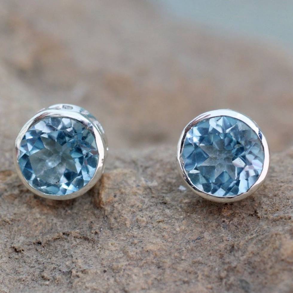 Blue Topaz Stud Earrings Sterling Silver Jewelry 'Spark of Life' Item ID: 2669924244
